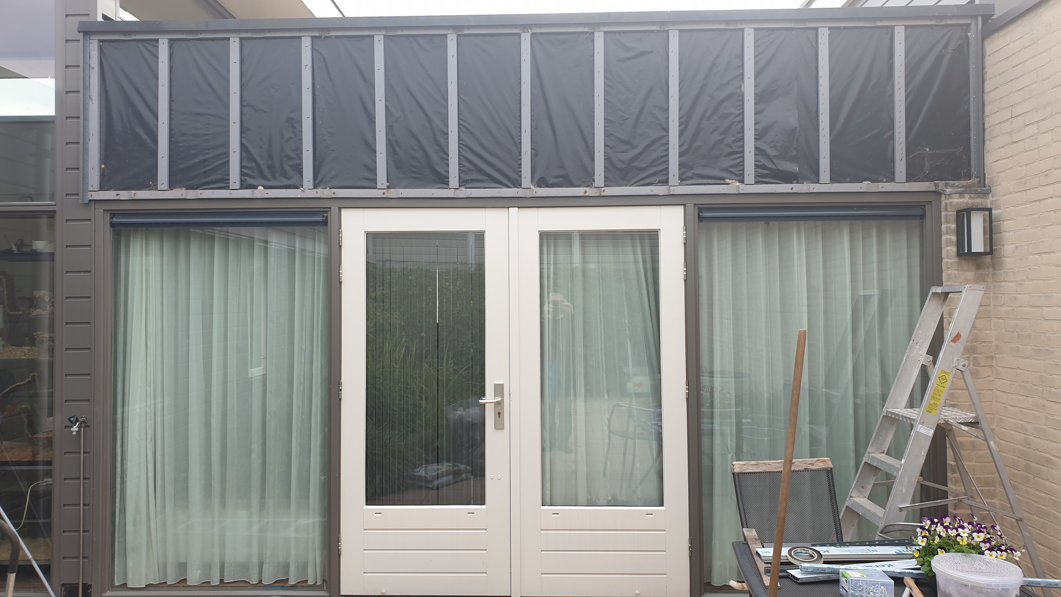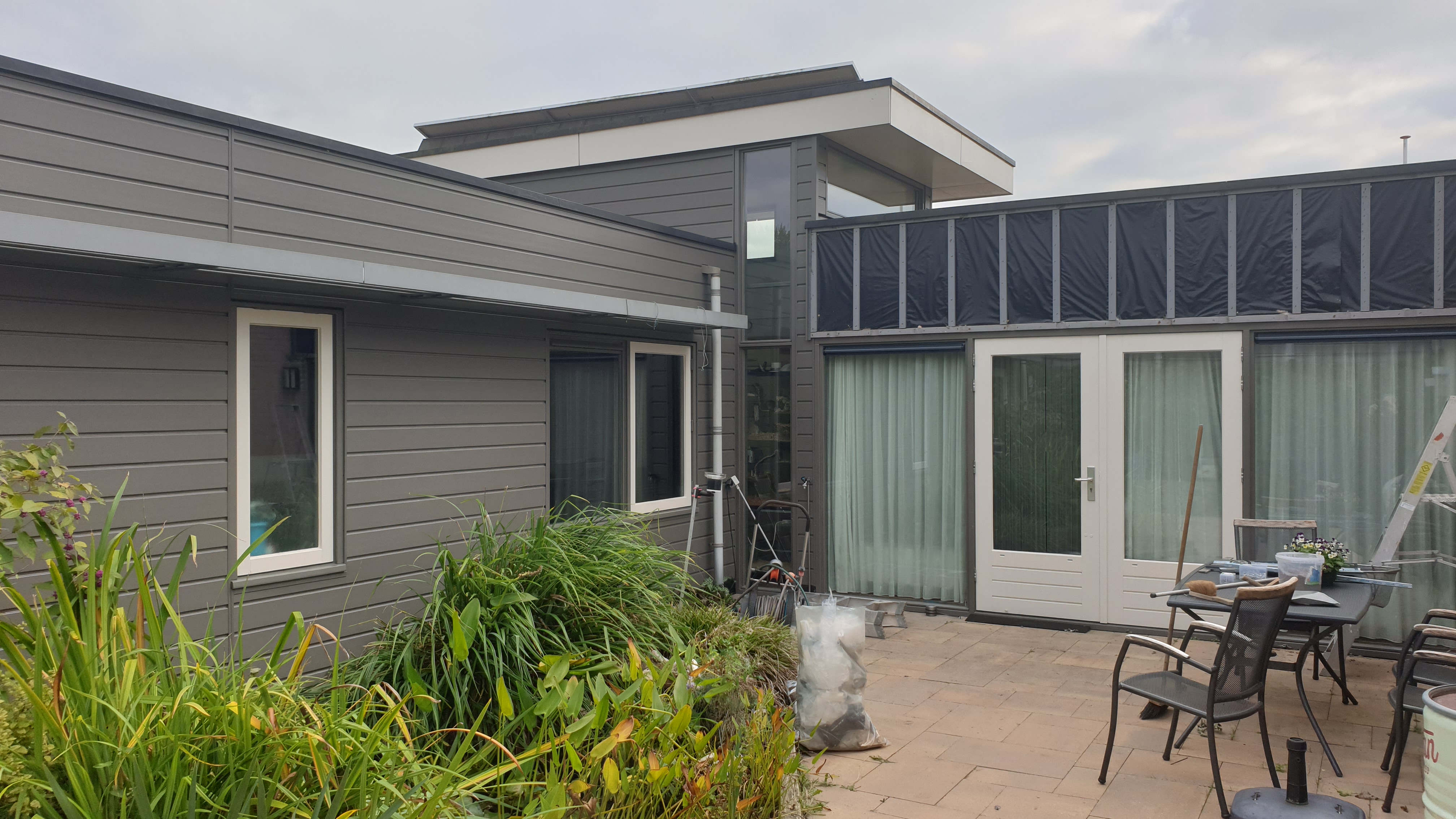 Dag 3 begint ook weer om 7 uur en gaat snel om. Ze hebben hard gewerkt aan de achterzijde van huis en die is bijna klaar. Het is echt en precies werkje en een hele klus. Charlie zat vandaag alles te bewonderen naast me op de grond en kijkend door het raam en zodra ze koffie dronken of gingen eten liep hij direct naar de deur om te kijken wat er was gebeurt, echt lief.