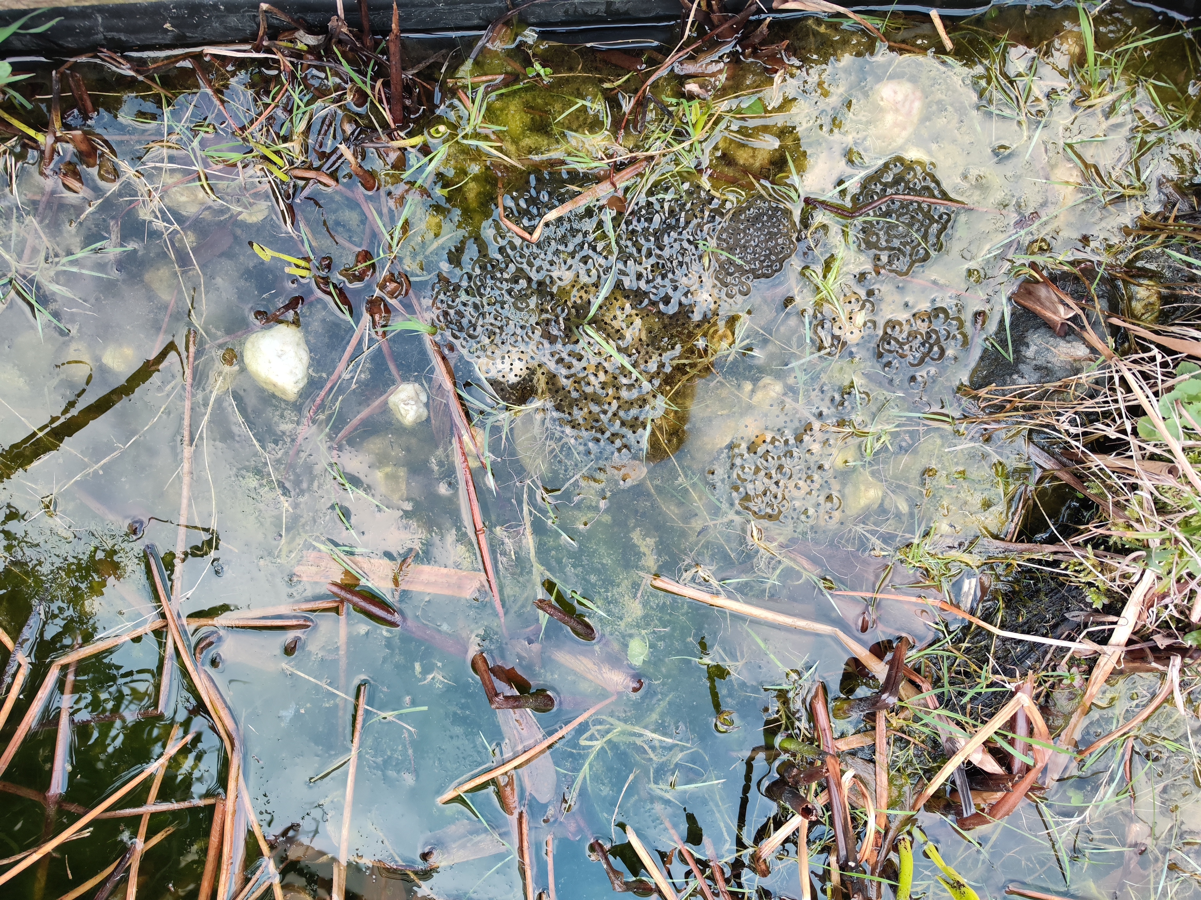 We hebben kikkerdril in de vijver, hopelijk laten de windes wat over die echt kikkertjes worden.