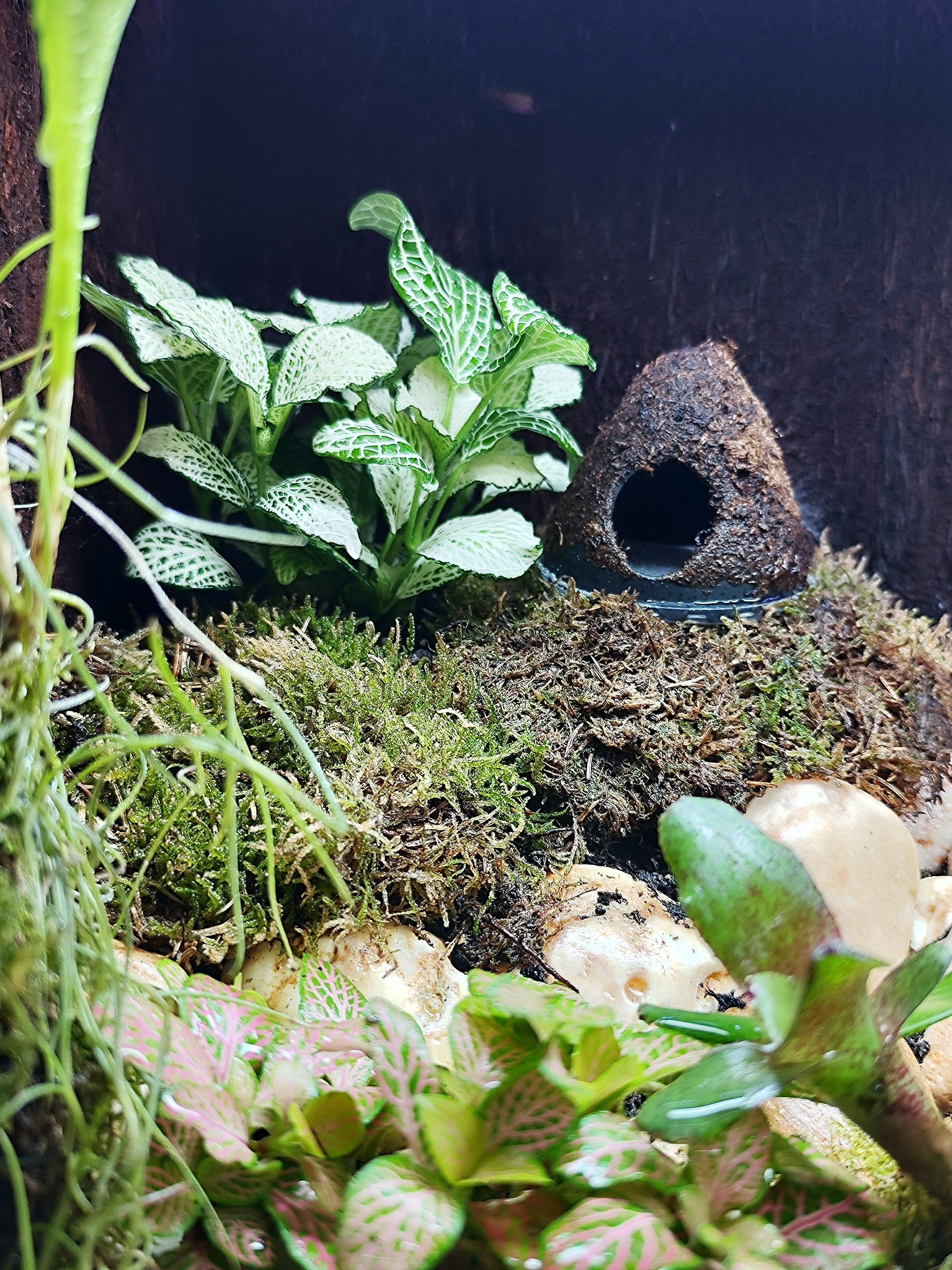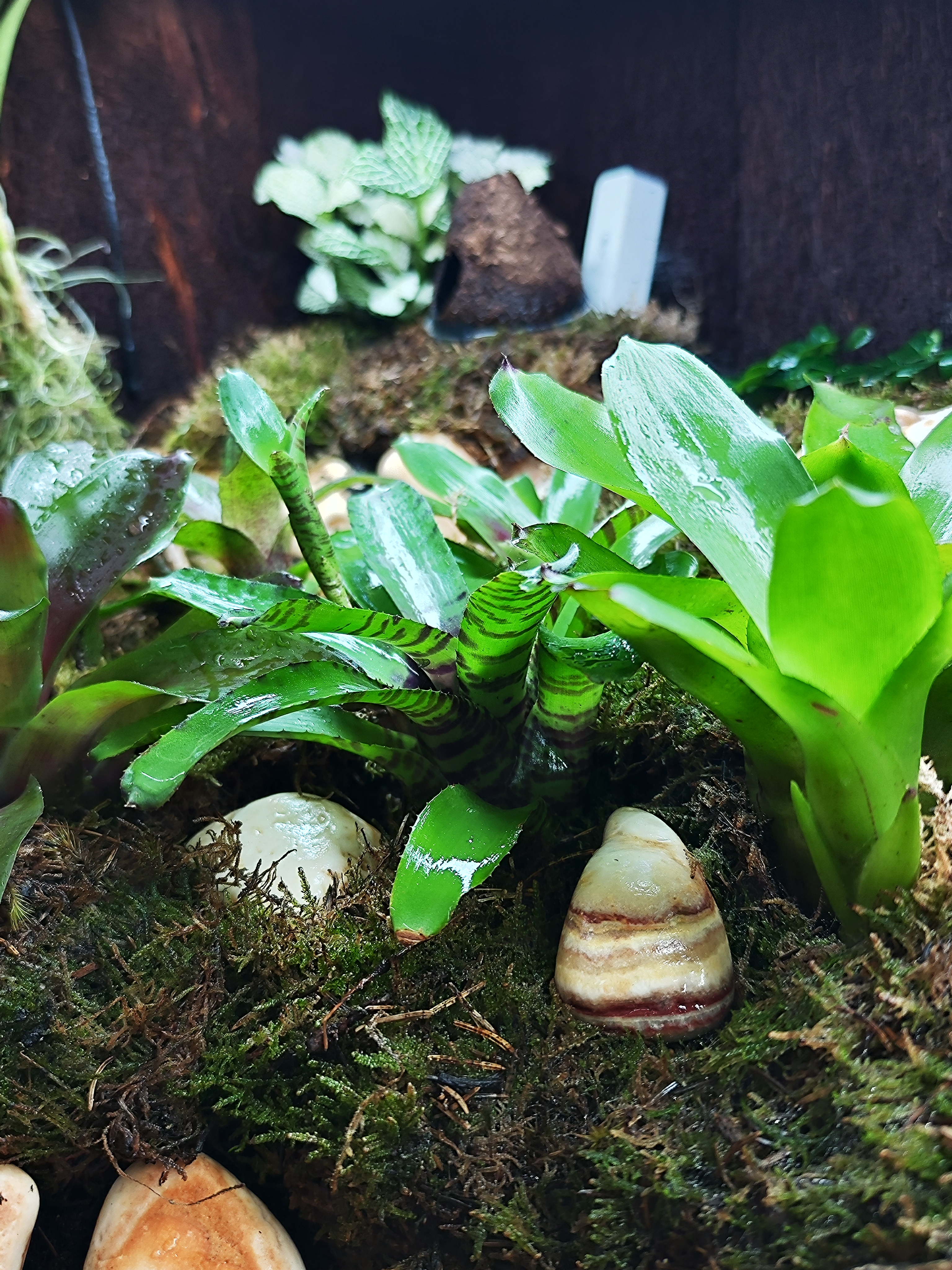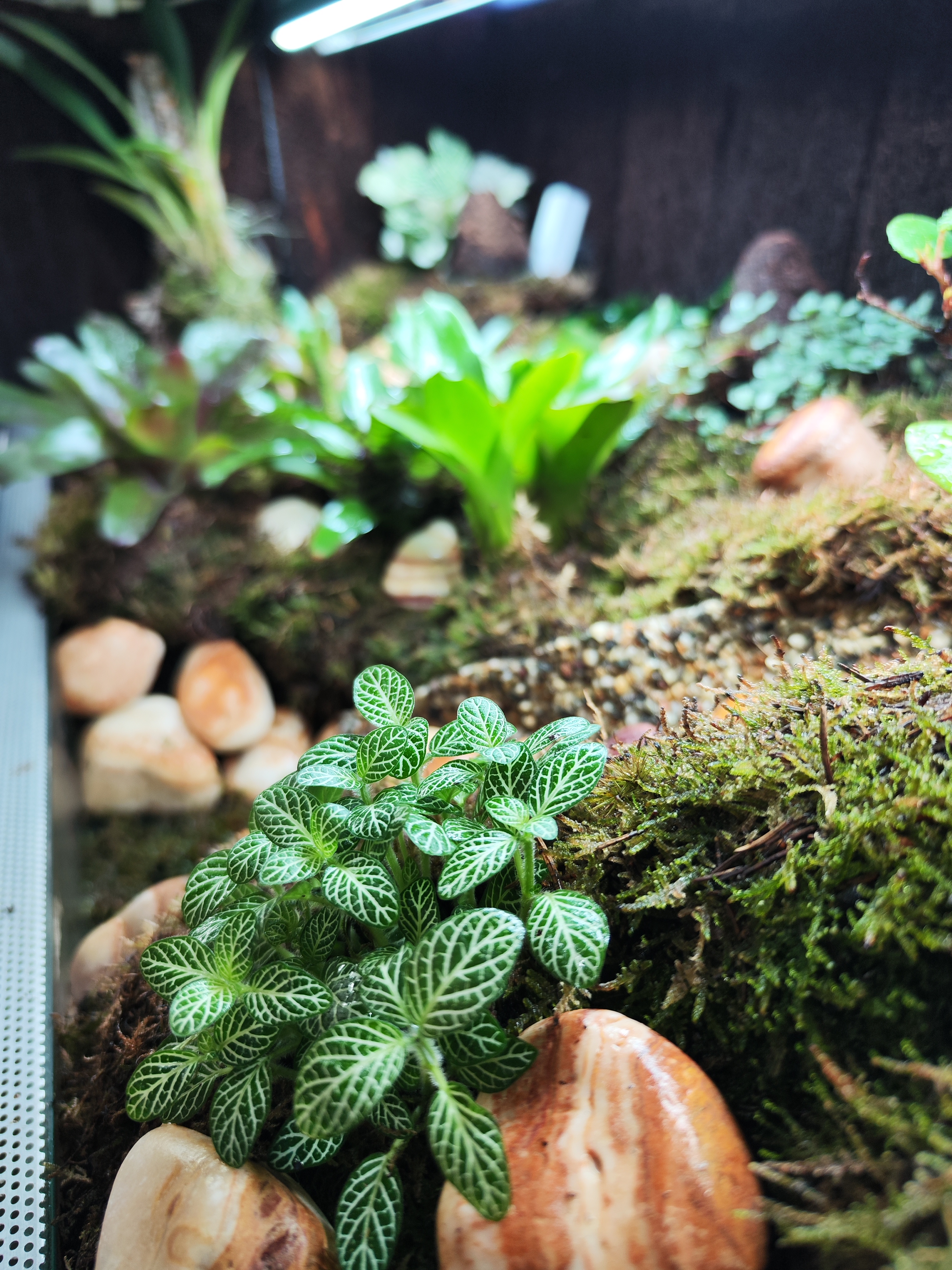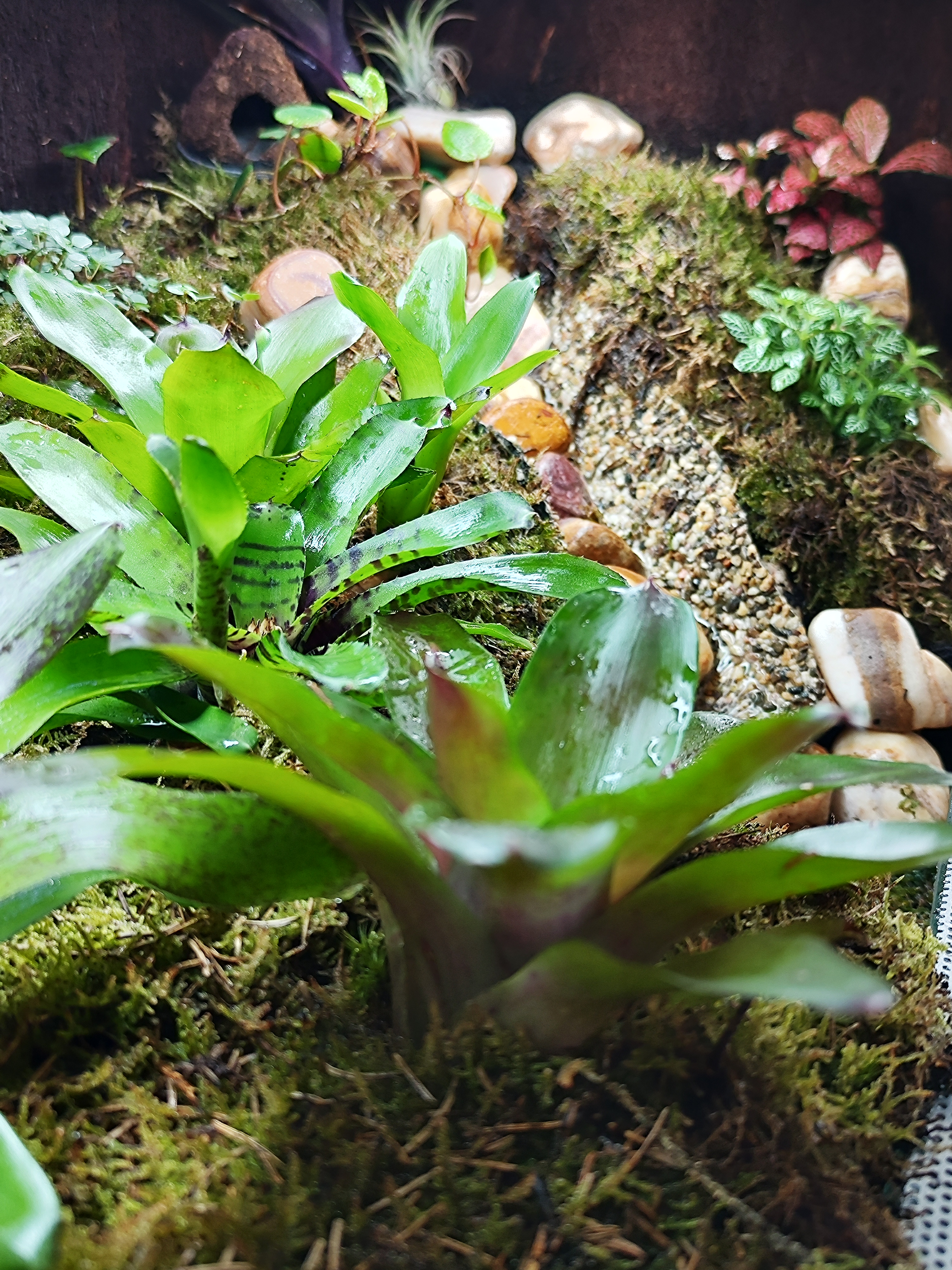 De nieuwe kikker bak is erg mooi aan het worden, water beekje loopt goed, warmte is prima, vochtigheid hoog genoeg, UVB lamp erin gemaakt en led lampen kortom nu is alles aan het groeien en mooi aan het zijn. Volgende stap is kikkers erin!